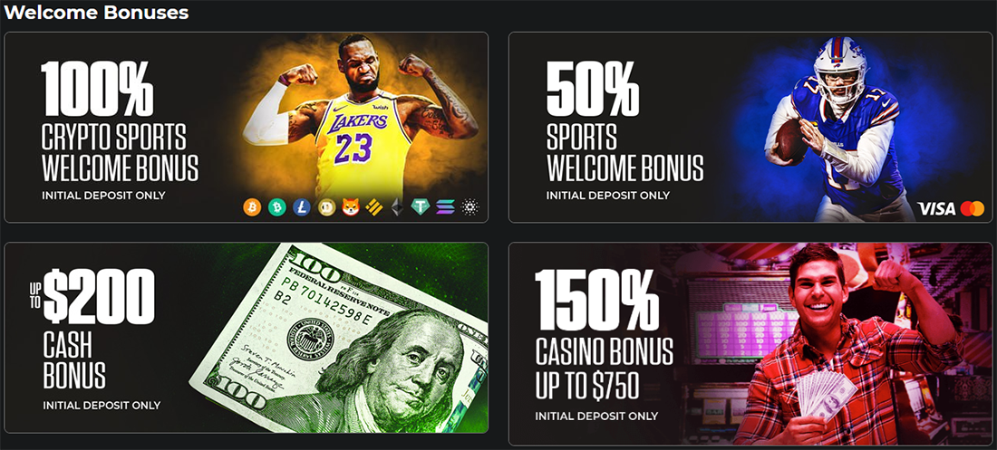 MyBookie offers players a series of generous welcome bonuses and rewards. When signing up to My Bookie there are 4 different welcome bonuses to choose from:
